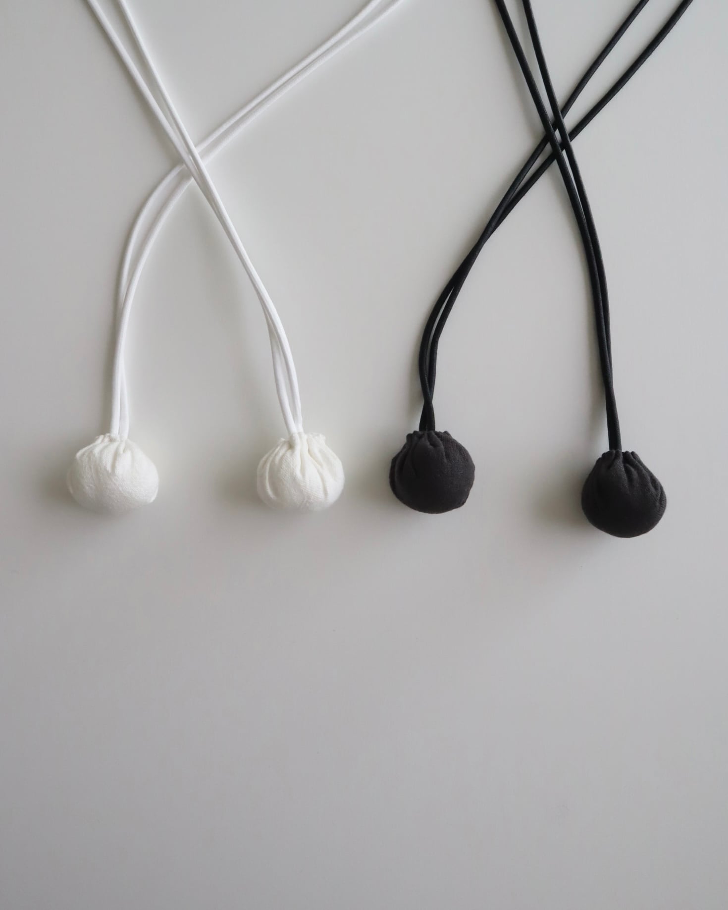 ループエンドのつぼみ同士をひっかけてから、肩にかける方法です。